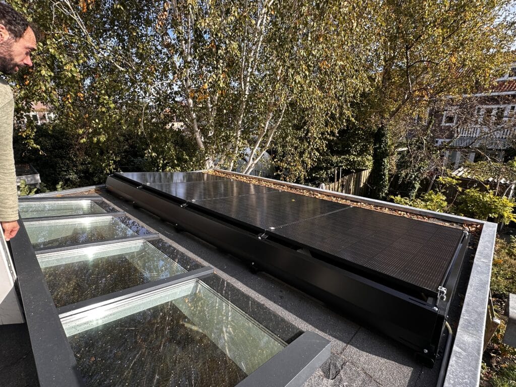 De klant in Haarlem had eerder zes zonnepanelen op een schuin dak. Na een dakrenovatie wilde de klant de panelen laten herplaatsen, maar dit keer op het platte dak van de woning. Daarnaast was er behoefte aan extra zonnepanelen op het platte dak van de uitbouw.