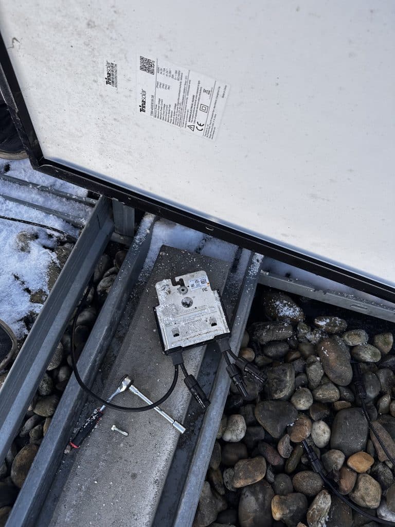 Omdat de optimizer onder het paneel is gemonteerd, is het probleem vanaf de grond niet zichtbaar. Inspectie op het dak is daarom noodzakelijk om de exacte oorzaak vast te stellen.
