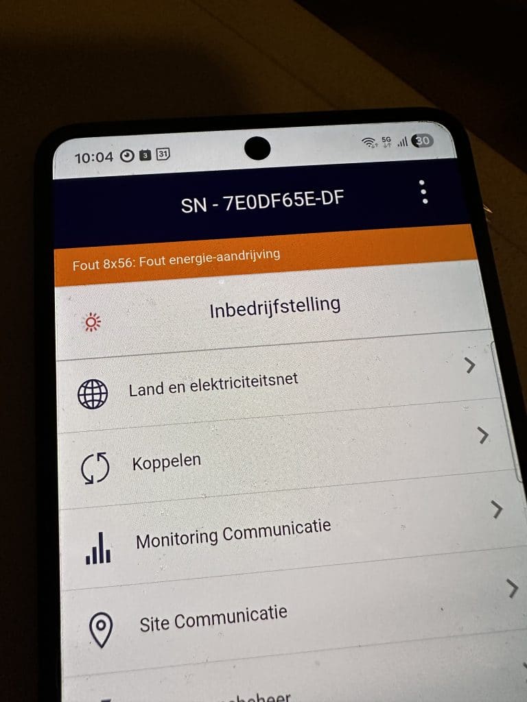 De klant in Leusden ervoer een aanhoudende storing op het zonnestroomsysteem met de melding SolarEdge fout 8×56 (energie-aandrijving). Hierdoor functioneerde de installatie niet betrouwbaar en bleef het rendement achter. Om de oorzaak vast te stellen en een structurele oplossing te realiseren, is een uitgebreide inspectie uitgevoerd in combinatie met overleg met de fabrikant.