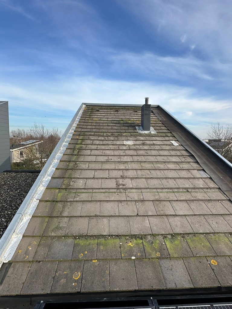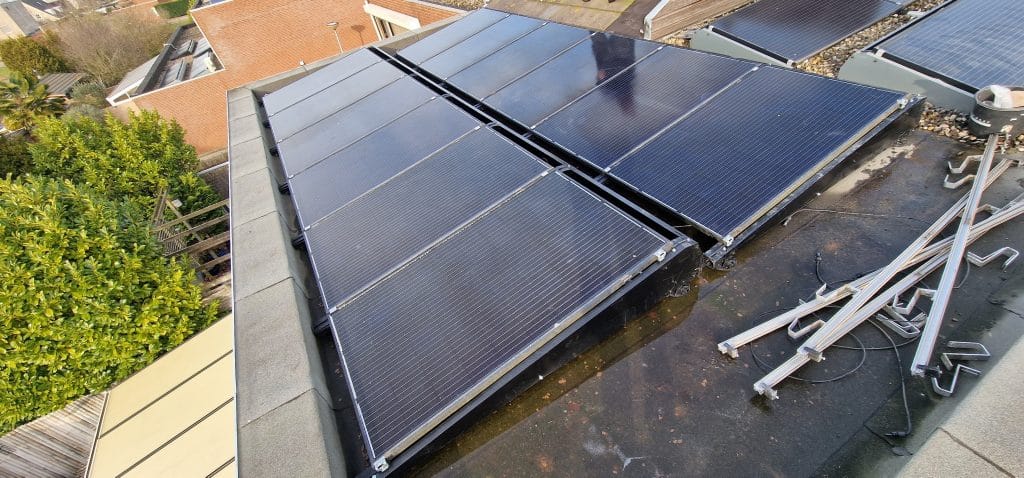 De klant had last van lekkage ter hoogte van het schuine dak waar de zonnepanelen waren geplaatst. Om verdere problemen te voorkomen, wilde de klant de zonnepanelen niet opnieuw op het schuine dak terugplaatsen, maar definitief verplaatsen naar het platte dak van de uitbouw. Daarbij was het belangrijk dat de panelen correct zouden worden gemonteerd met geschikt materiaal en dat de monitoring ook zou worden aangepast aan de nieuwe ligging van de installatie.