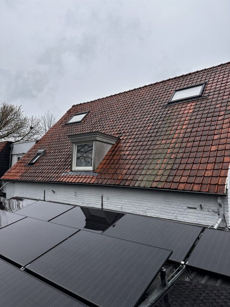 Onze monteurs hebben de 18 zonnepanelen en het bestaande montagesysteem zorgvuldig gedemonteerd van het platte dak van de uitbouw. Vervolgens is het systeem opnieuw opgebouwd op het hellende dak van de woning met een geschikt opdak montagesysteem. Daarbij zijn de zonnepanelen opnieuw aangesloten, is de bekabeling aangepast waar nodig en is het systeem gecontroleerd zodat de installatie weer veilig en correct kan functioneren.